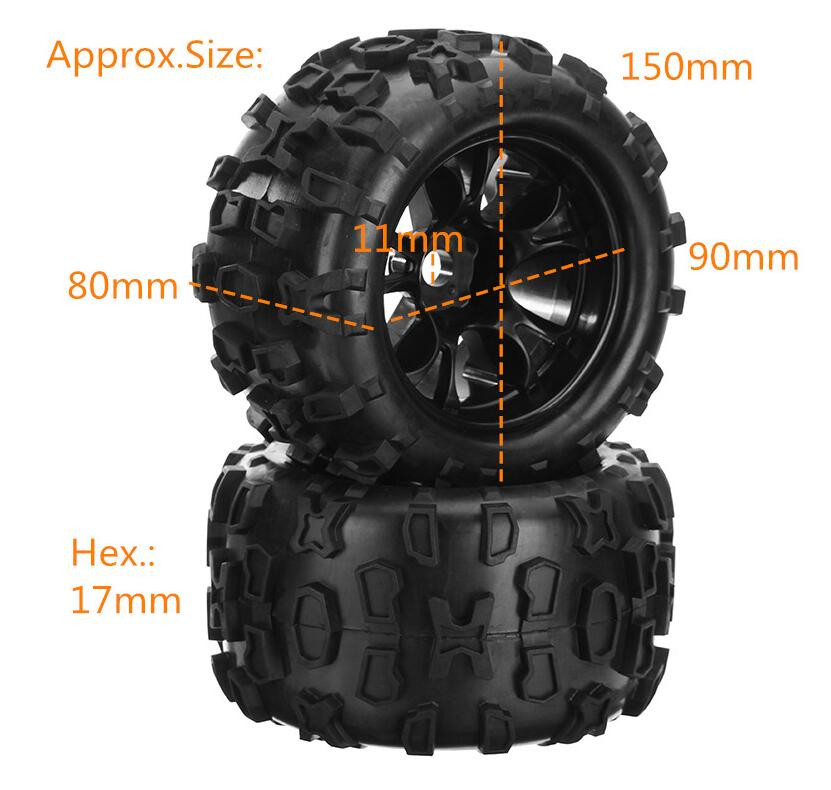 These are the DHK Tires and Wheels for the Maximus 1/8 Trucks (8382-704). Includes 2 pieces.