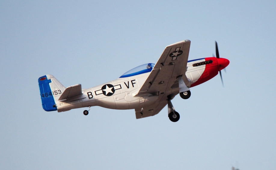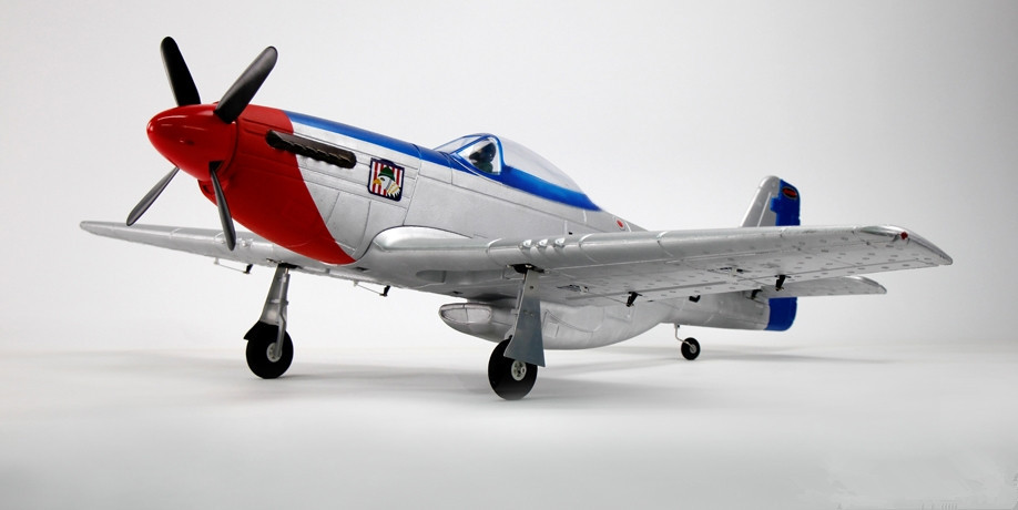 The new P51D Mustang by Dynam is a true scale 5 channel R/C aircraft and comes with pre-installed electronic retracts. The stunning look make this super realistic in the air and taxiing on the ground. The P51D is an aircraft that is super stable and capable of maintaining flight at super slow speeds that allow novice to master flight mechanics with ease. Will easily take off from any smooth surface on its scale landing gear. Made from a high strength EPO-foam for added durability. Powered by a high powered 950KV electric brushless motor provides a thrilling flight of over 50mph for up to 8-12 minutes.