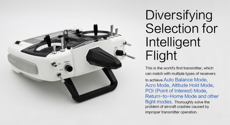 Four flight modes: Gyro off, Normal, Aerobatic, and Auto-Recovery (Auto Balance). You can switch between different modes by the toggle switch.