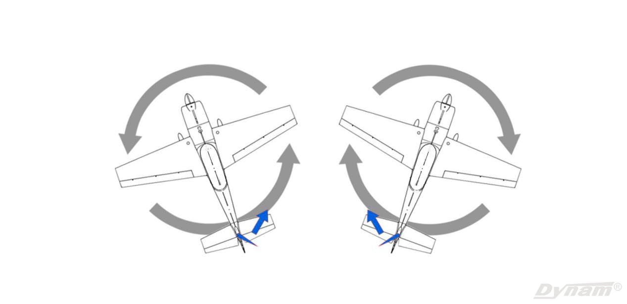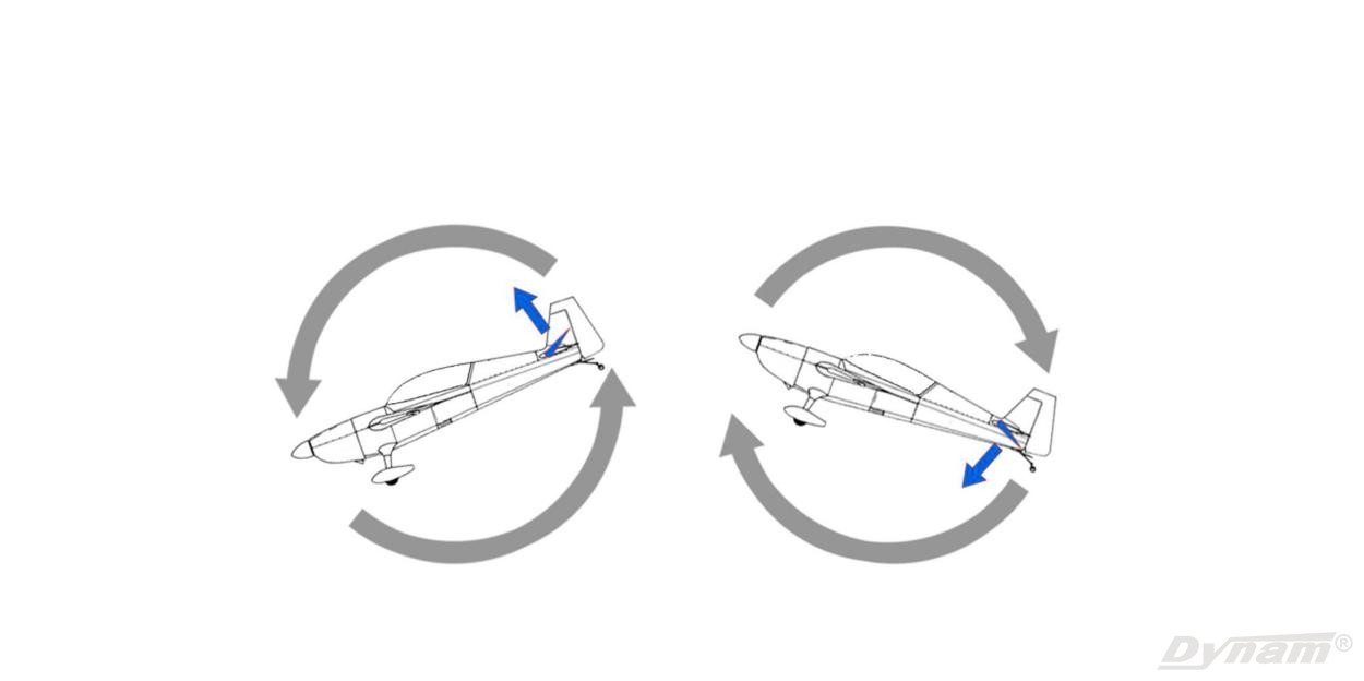 Turn the mode switch to Auto-Recovery Mode or normal mode (stabilization). Take the airplane and move it as indicated in the figure below. Observe whether the control of the rudder surface is as shown. If the direction is opposite, please enter Airplane Gyro menu to adjust the corresponding sensitivity direction to achieve the same as the figure, then we can start to fly.