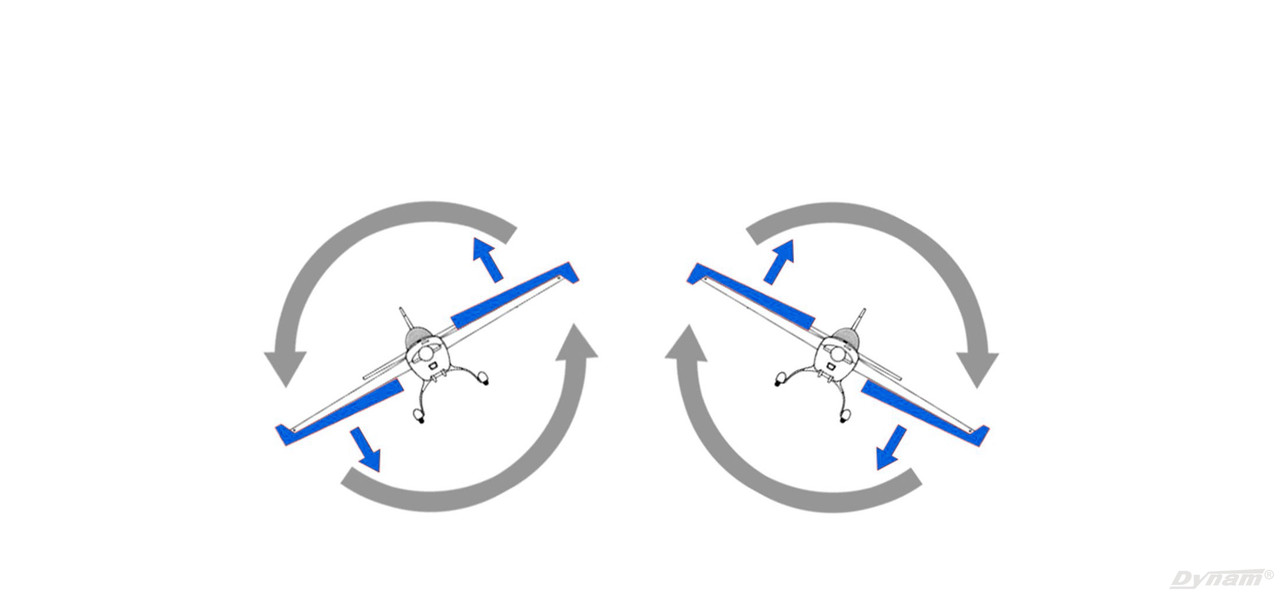 Pick up the plane as shown in the direction of the roll motion to observe whether the aileron action is as shown