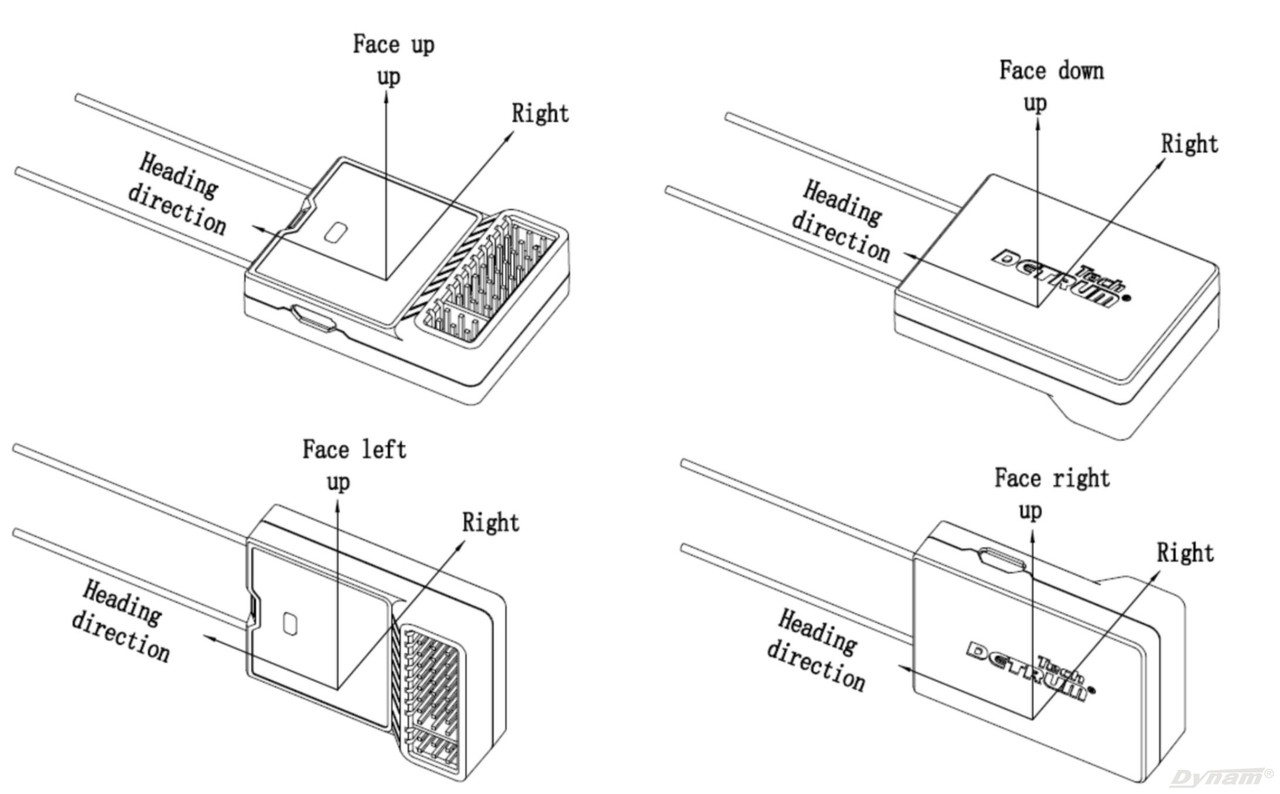 Choose one of the following installation directions according to the internal structure of the aircraft. Firmly fit into the fuselage with double-sided tape (Fuel aircraft need to use shock absorption measures). Connect each channel and connect the GPS module.