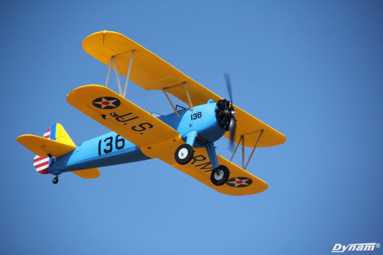• Dynam Stearman PT-17 Blue 4S RC Biplane 1300mm Wingspan