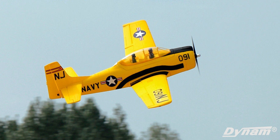 Dynam 2.4Ghz 5 Channel t-28 trojan comes with a 4S 2200 li-poly battery and a high powered 800 KV Brushless Motor. The new Trainer by Dynam is a true scale ready to fly 4 channel R/C aircraft. Stunning looks make this super realistic in the air and taxiing on the ground. Months of flight testing and design yield an aircraft that is super stable and capable of maintaining flight at super slow speeds that allow novice to master flight mechanics with ease. As the novice learns he can push the Dynam Trainer to faster speeds of up to 50 mph! Will easily take off from any smooth surface on its scale landing gear. Made from a high strength EPO-foam for added durability. Powered by a high powered 950KV electric brushless motor and a 14.8V li-poly battery pack that provide up to 15 minutes flight between for each charge. Included charger will fully charge battery in only 4 hours. Makes a great gift since everything needed to fly comes in one box. 4 Channel 2.4 GHZ Radio, Battery, Charger, Spare Propeller, Everything included and pre installed.