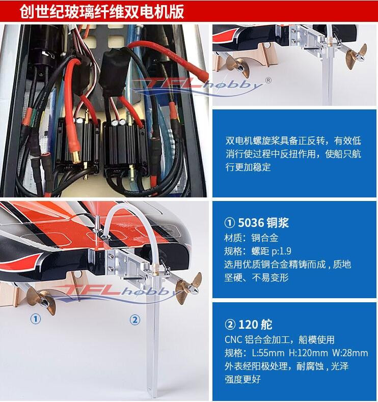 TFL 1122 940mm Genesis 900 2.4G RC Boat Double Brushless 3660 KV1620 Motor 180A ESC without Battery Servo Transmitter Charger