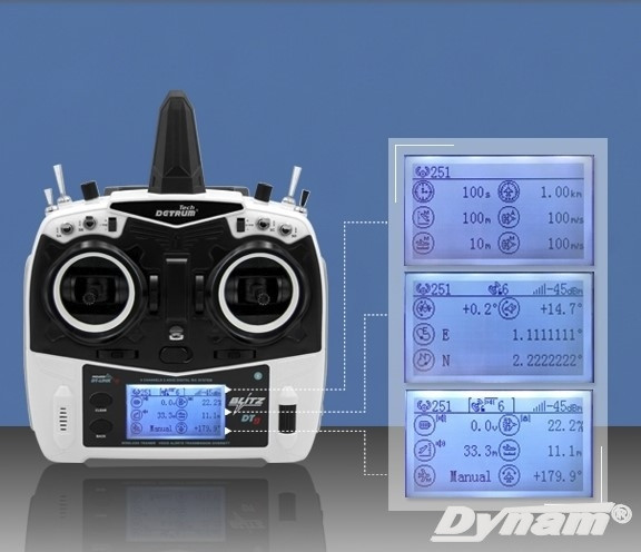 When it cooperated with Detrum Blitz-DT9 Transmitter and RXC9M receiver, it can return real-time voltage, altitude, speed, attitude, distance, satellite signal and other information to the transmitter in real time, with voice broadcast and record the maximum & average value of information after the aircraft landed for analysis.