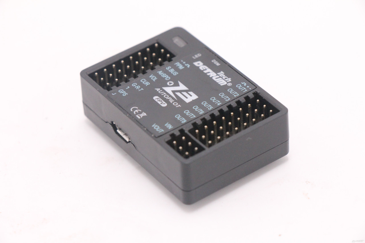 Z3-FPV is compatible with Spektrum, Futaba, Detrum and all other transmitters on the market, and supports DSM, S.BUS, PPM receivers. And by connecting with Detrum’s programming card, it is convenient for parameter setting and simple and intuitive operation. When working with Blitz-DT9 and RXC9M receivers, it can transmit real-time information such as voltage, altitude, speed, posture, distance, satellite signals, etc. to the transmitter, and can perform voice broadcast. And record the maximum value and average value of information after the aircraft landed for analysis