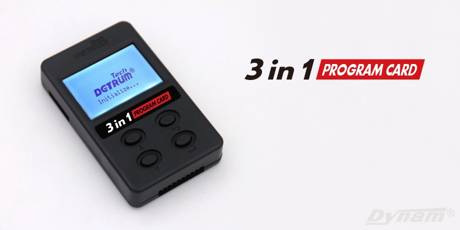 The 3-in-1 program card is used to set the programmable items for ESCs and stabilizers and measure the voltage for Li-Po battery. Its friendly LCD interface makes the programming and measurement easy.