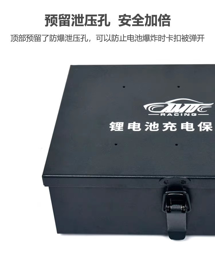 Special Note: Do not place flammable items around the explosion-proof case while charging to avoid ignition in case of a battery fire. Additionally, the explosion-proof case can effectively prevent battery explosions and initial fires, but it cannot completely prevent fires, so someone should still supervise the charging process.