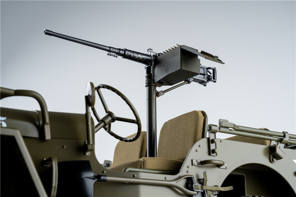 Gun is very detailed, has ammo case and bullets, very realistic and mounts in Jeep easily.