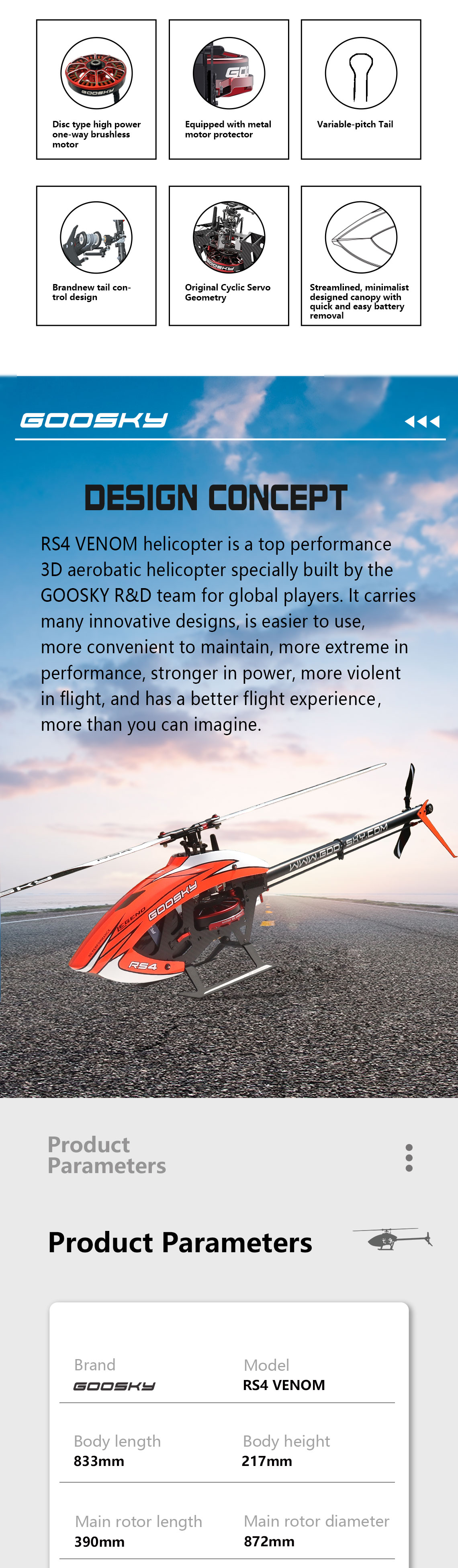 Goosky Legend RS4 Venom RC Helicopter Combo Version - Orange / Green (unassembled)
