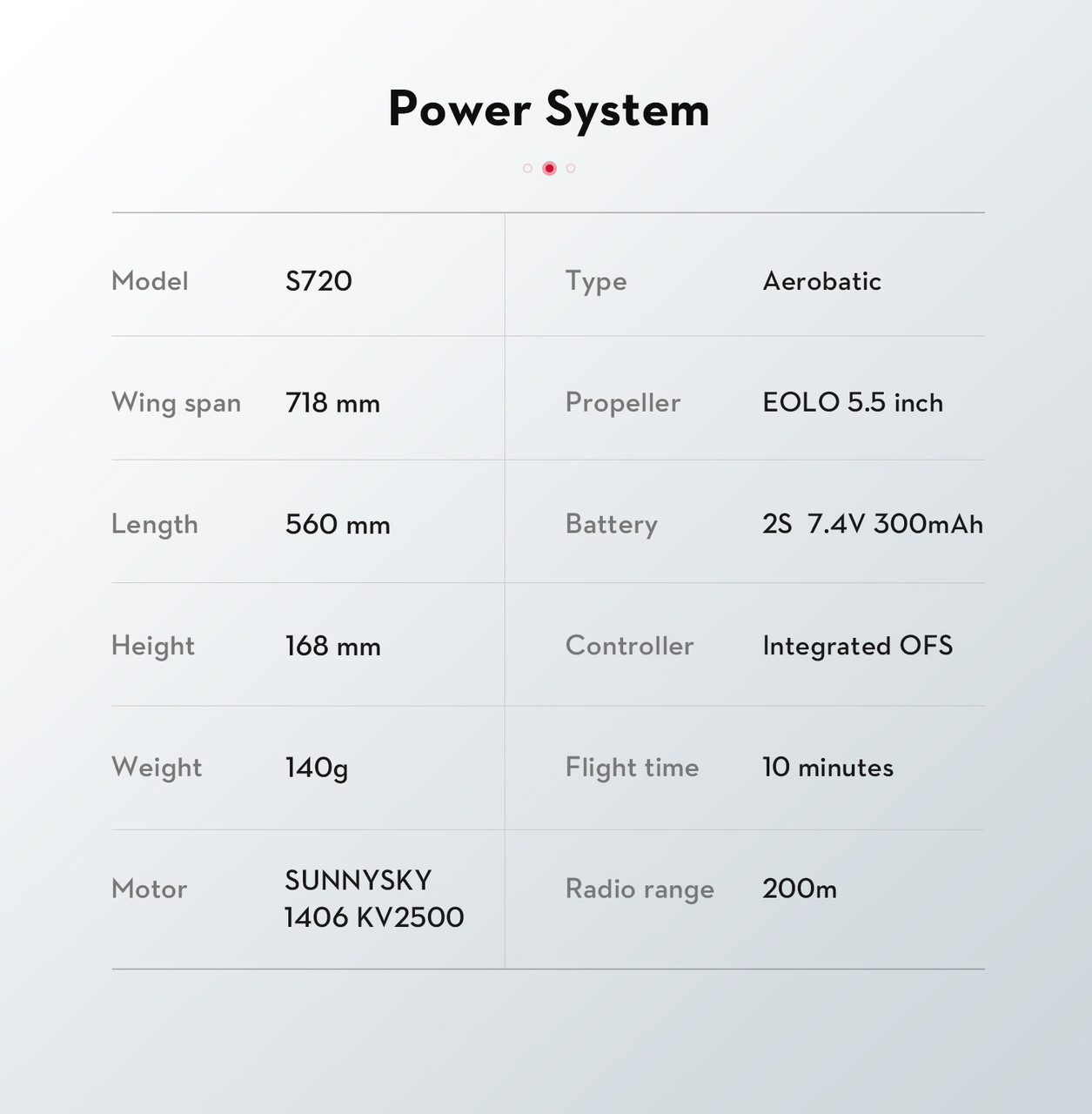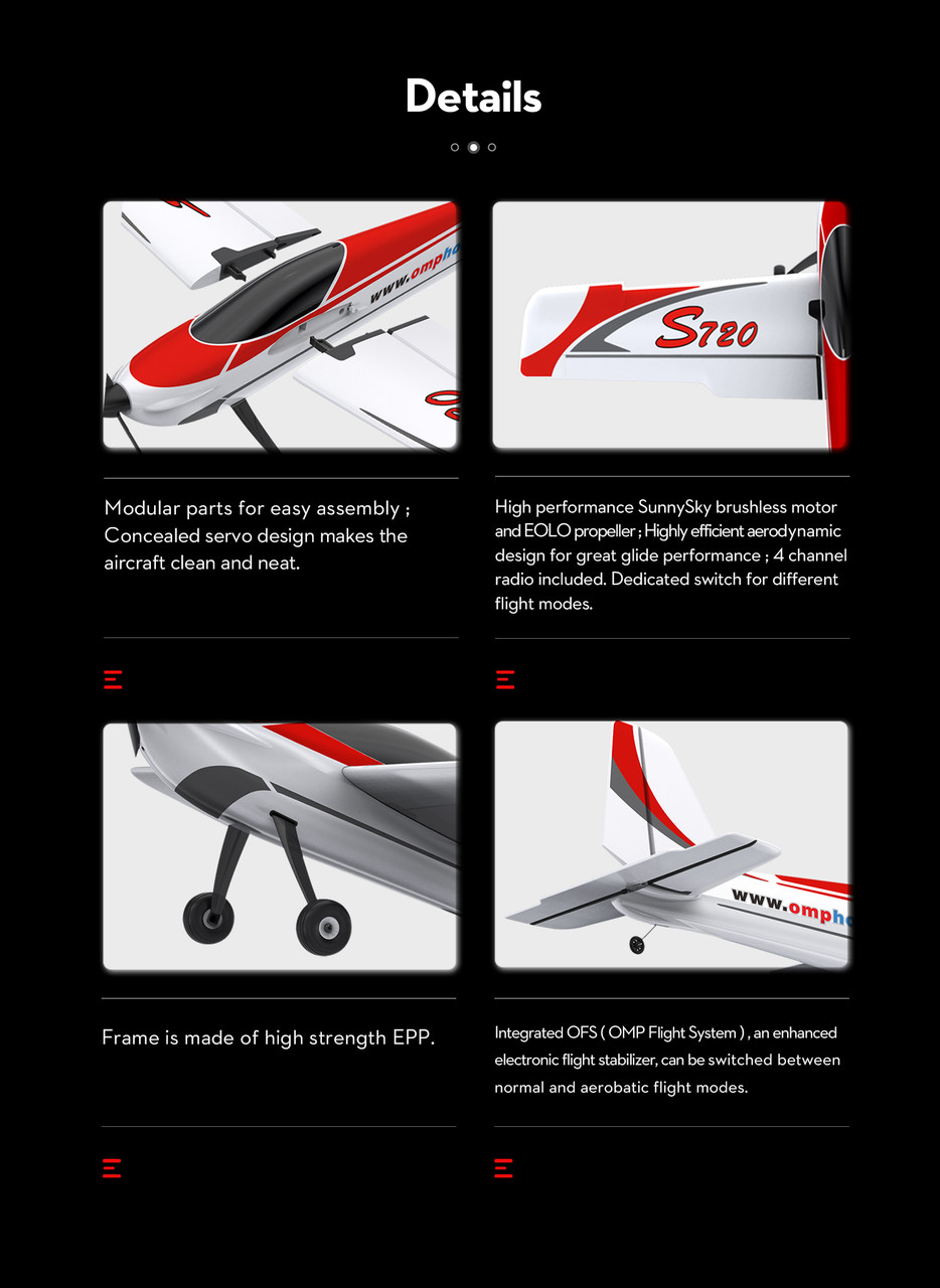 Integrated OFS (OMP Flight System), an enhanced electronic flight stabilizer, can be switched between normal and aerobatic flight modes.